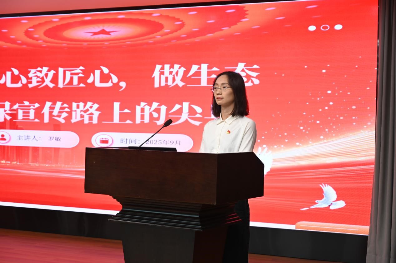 宣講會上,獲得2024年度中央和國家機(jī)關(guān)“四好”黨員榮譽(yù)稱號的羅敏同志以《以初心致匠心,做生態(tài)環(huán)保宣傳路上的尖兵》為題,講述在編輯崗位上深耕細(xì)作、遇到困難時迎難而上,不斷踐行初心使命、勇于擔(dān)當(dāng)作為的奮斗故事。
