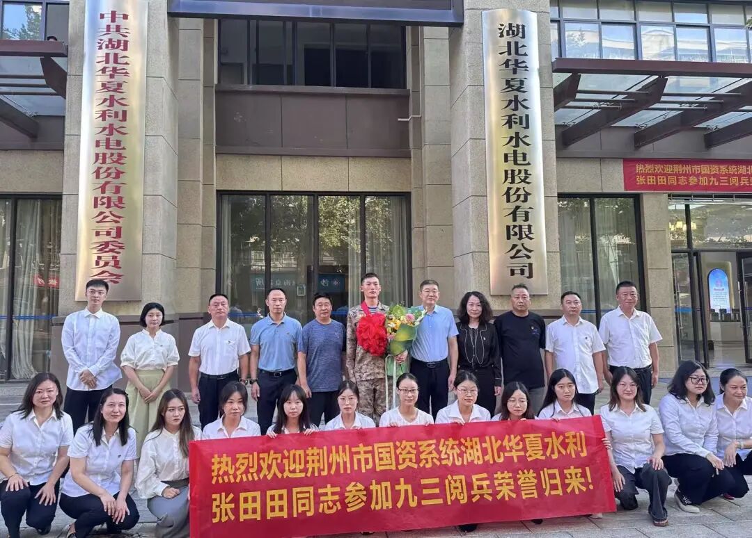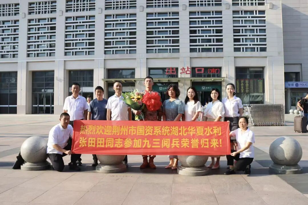 9月4日下午,張?zhí)锾锿据d譽(yù)歸來(lái)。荊州市退役軍人事務(wù)局副局長(zhǎng)李荊鳳,荊州市政府國(guó)資委黨委委員、副主任童克忠、黨委委員、副主任嚴(yán)珩,湖北華夏水利黨委書記、董事長(zhǎng)張澤武一行來(lái)到荊州火車站熱情迎接。