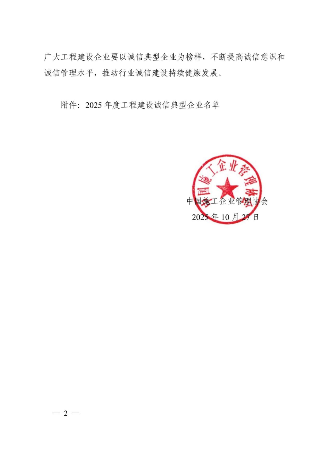 近日,中國(guó)施工企業(yè)管理協(xié)會(huì)正式發(fā)布《2025年度工程建設(shè)誠(chéng)信典型企業(yè)名單》,湖北華夏水利水電股份有限公司憑借卓越的企業(yè)信譽(yù)、規(guī)范的經(jīng)營(yíng)管理與扎實(shí)的誠(chéng)信建設(shè)成果,成功入選該名單,首次榮獲 “2025年度工程建設(shè)誠(chéng)信典型企業(yè)” 榮譽(yù)稱號(hào)。